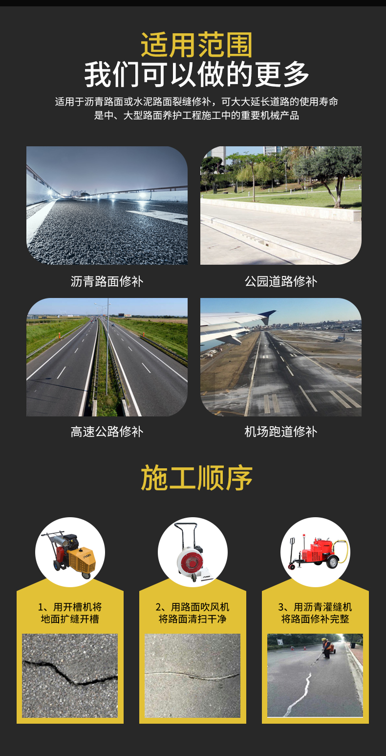 FGF-100瀝青灌縫機使用原料為瀝青灌縫膠,主要用于瀝青路面不規(guī)則裂縫、混凝土路面、橋梁伸縮縫、上下水道、煤氣管埋設(shè)機鋪裝路面的連結(jié)處防水處理,而專門設(shè)計、生產(chǎn)的瀝青補灌縫專業(yè)機械。