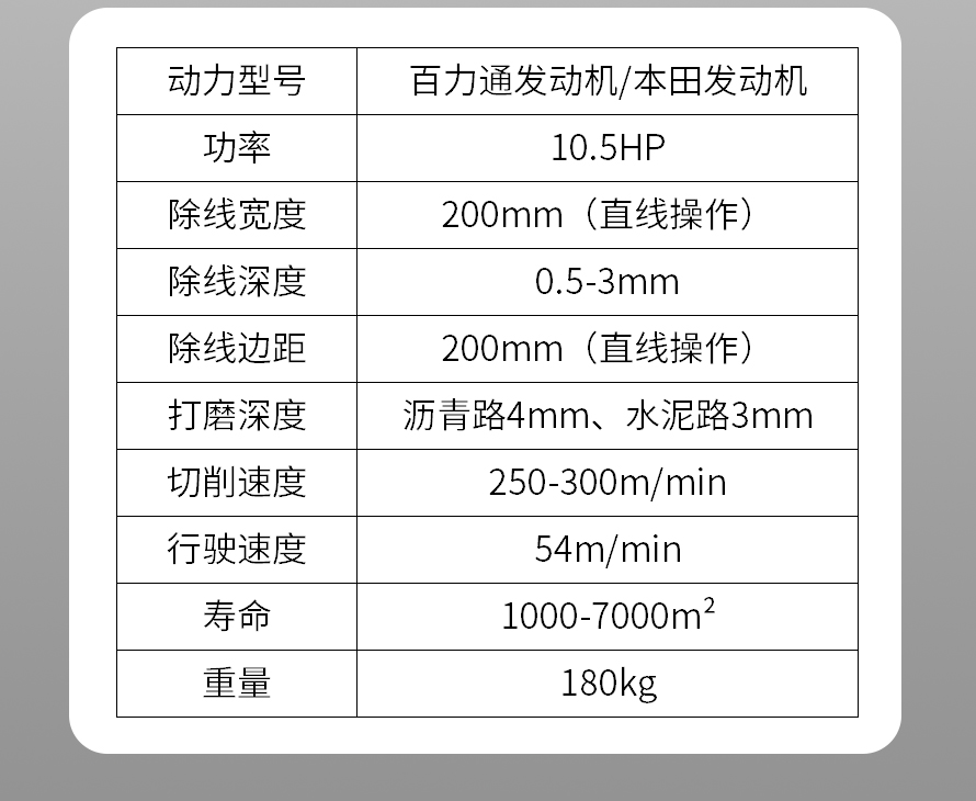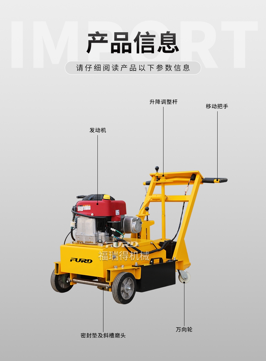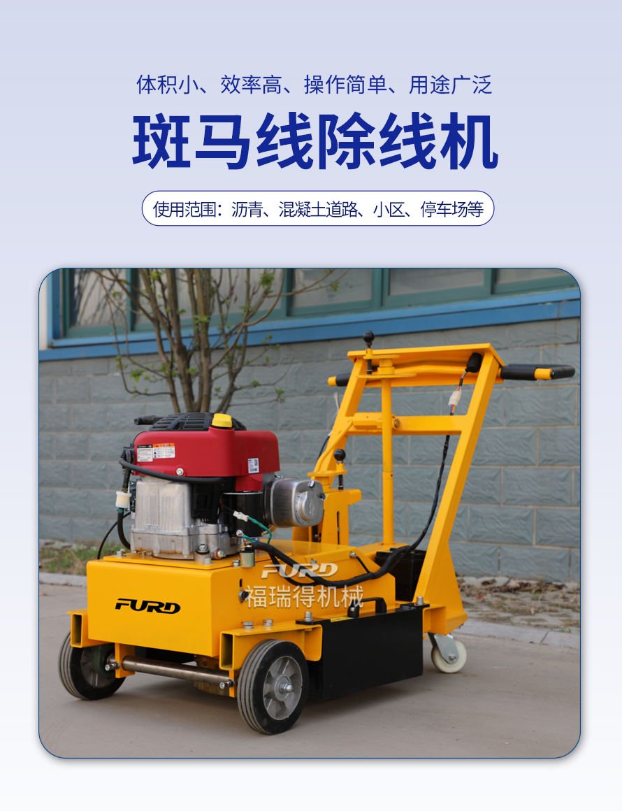 特點:體積小、重量輕、機動靈活、工作效率高、操作簡單。 適應范圍:主要用于瀝青道路、混凝土道路、物業(yè)小區(qū)、機場、停車場等地的標線清除。